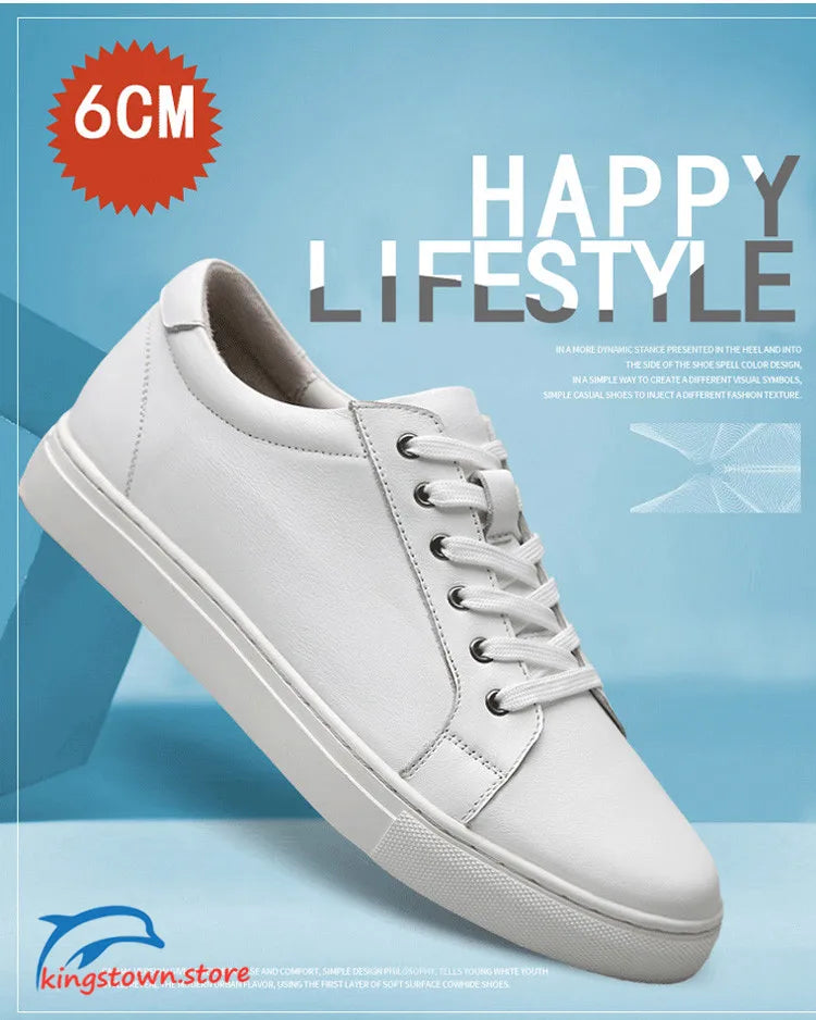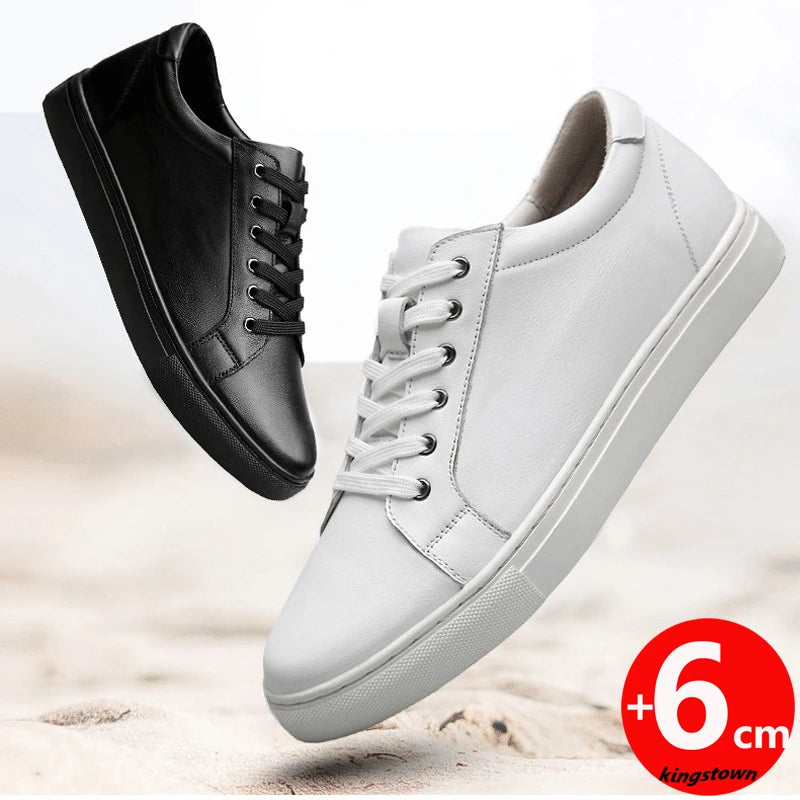 Men’s Leather Elevator Sneakers – 6CM Height Increasing Shoes