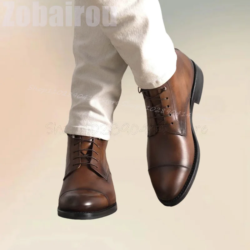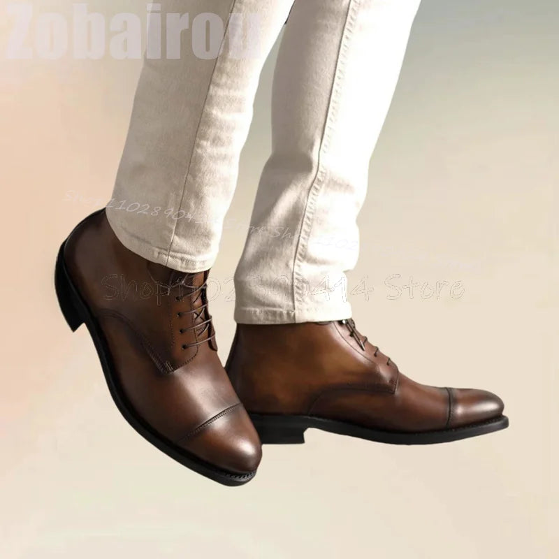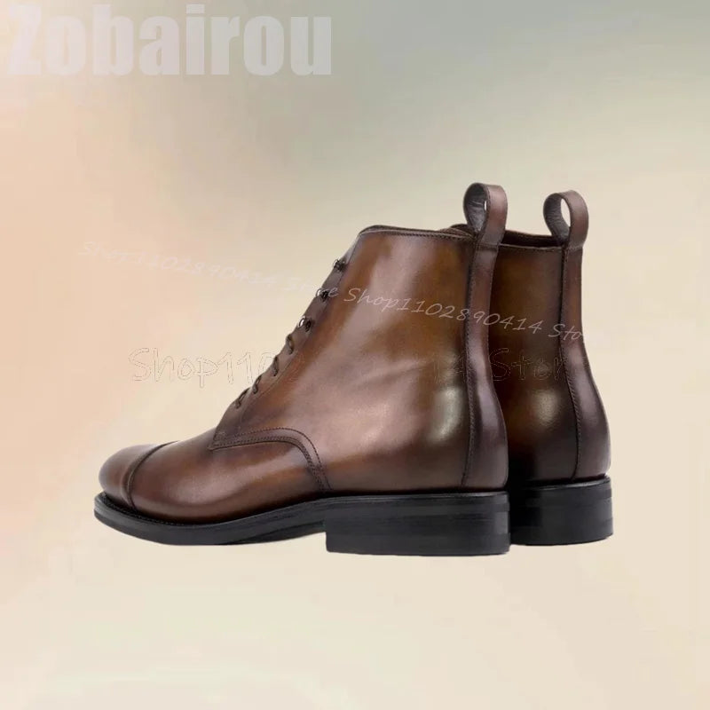 Step into luxury with these Rivets Decor Brown Lace-Up Ankle Boots for Men, a perfect fusion of fashion, comfort, and craftsmanship. These stylish boots feature intricate rivet detailing and a sophisticated sewing design that adds a modern, edgy flair to your look. The lace-up closure provides a secure fit, while the ankle-length design offers both support and versatility.