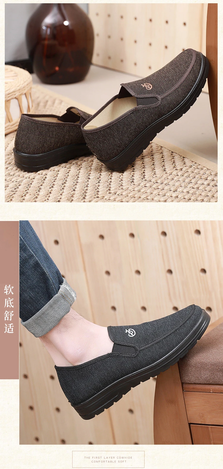 Experience timeless comfort with the Spring New Old Beijing Cloth Shoes for Men, designed for both style and practicality. These breathable, lightweight shoes feature a classic single-shoe loafer design, perfect for elderly men or those seeking comfort without sacrificing style. The soft bottom construction provides cushioning with each step, while the anti-skid sole ensures stability, making them ideal for everyday wear, whether at home or out and about.